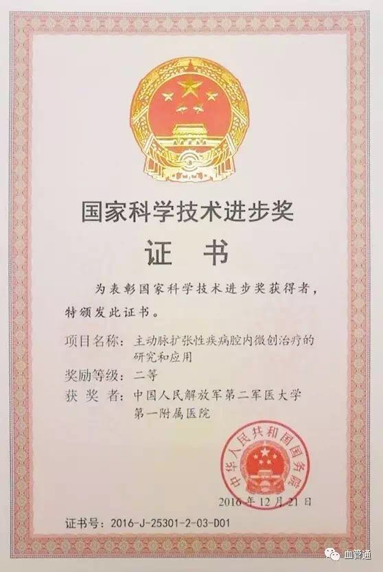 主动脉扩张性疾病腔内微创治疗的研究和应用获国家科学技术进步二等奖